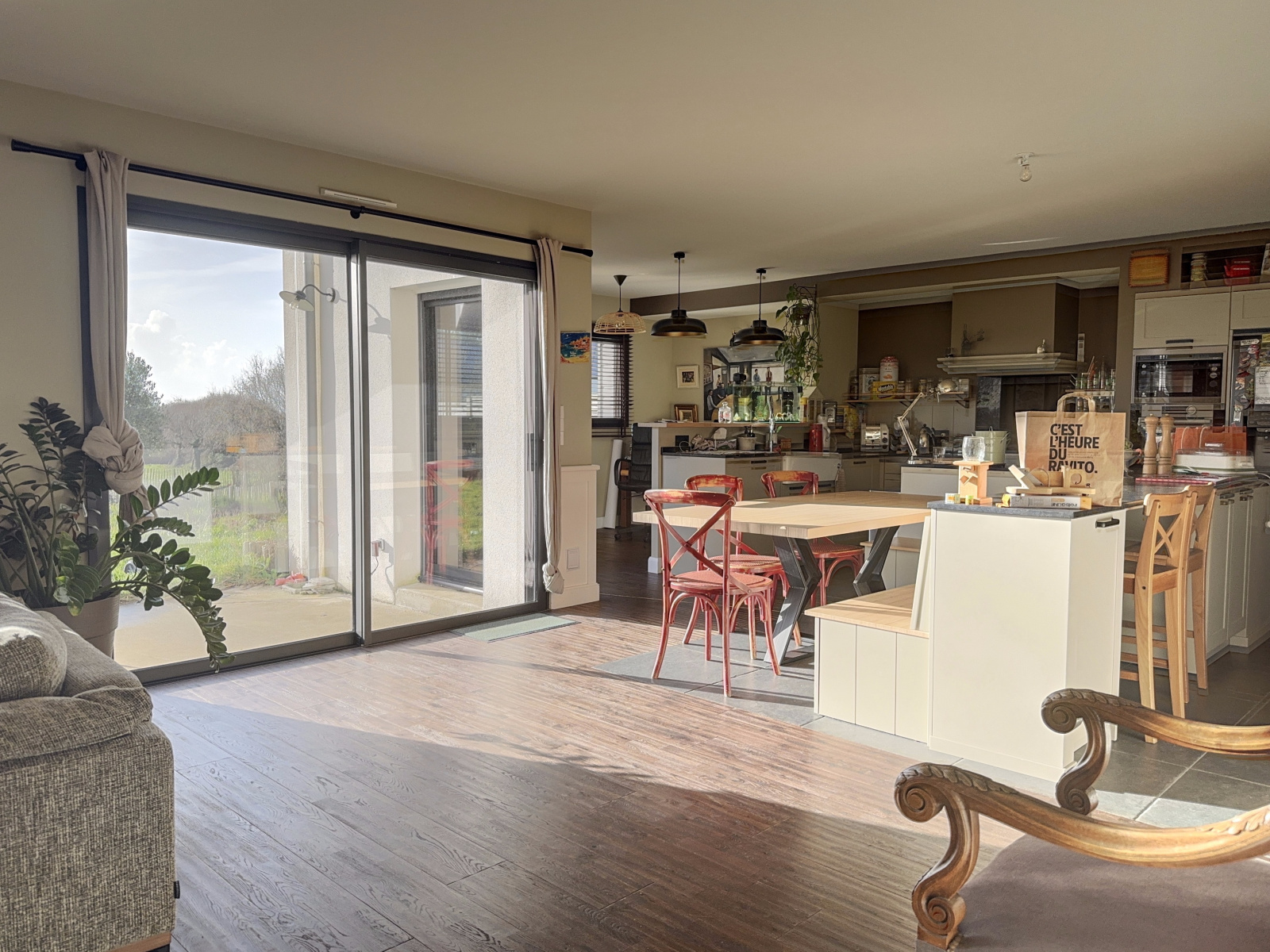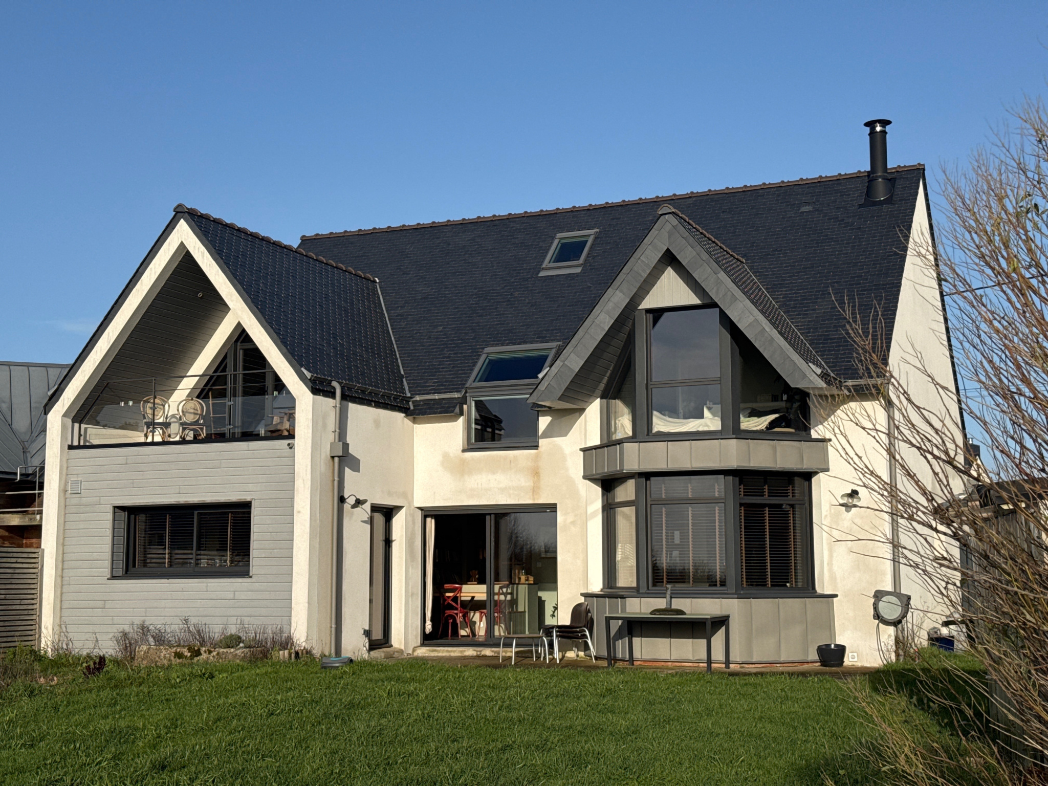 Volumes, lumière et beaux espaces sont résolument au coeur de cette construction de qualité de plus de 203 m2 habitables. Rentrons à l'intéreur ... Au rez-de-chaussée, un large hall d'entrée offre de nombreux rangements et s'ouvre sur une pièce de vie de 70 m2 avec cuisine ouverte richement dotée, ainsi qu'une arrière-cuisine. Le pôele à bois vous rechauffera par des soirées hivernales quand son family-room pourra s'animer lors de réunions familiales. En bonus, une véritable cave réfrigérée dans une pièce dédiée pour les amateurs de grands crus donnant sur cette même pièce de vie (grands crus non compris dans la vente !). Son bow-window n'est pas sans suggérer un univers outre-manche et son ambiance feutrée.