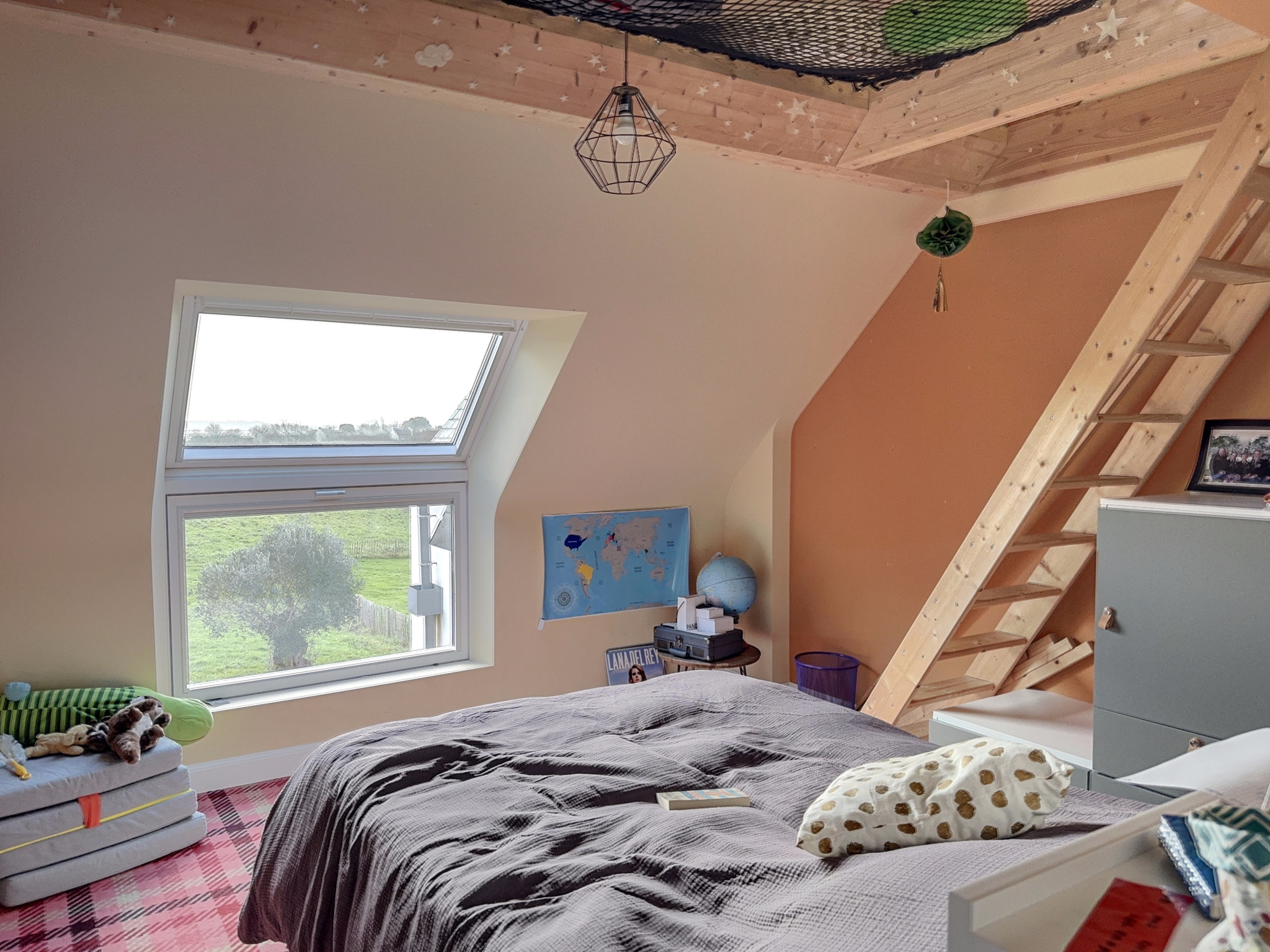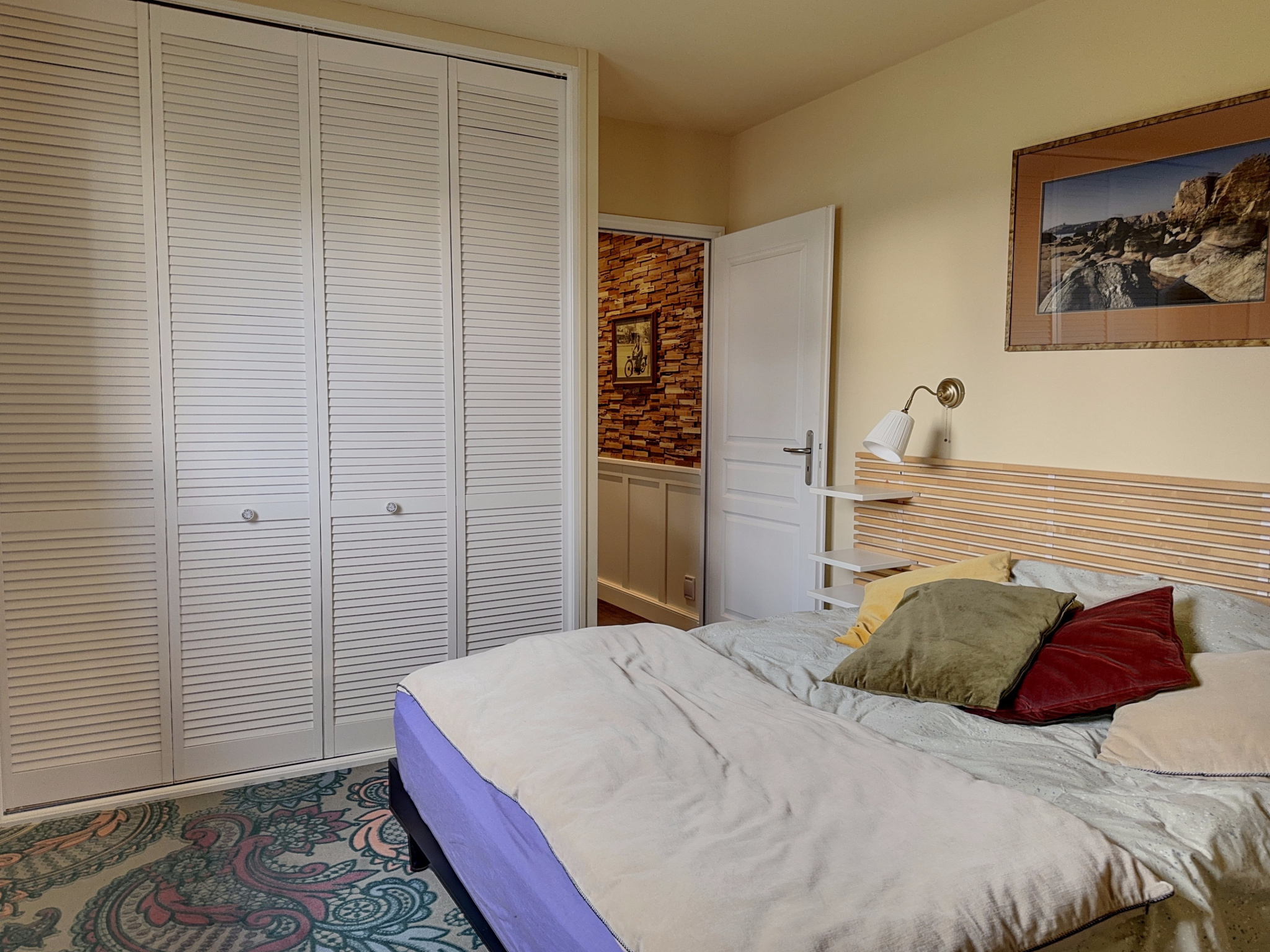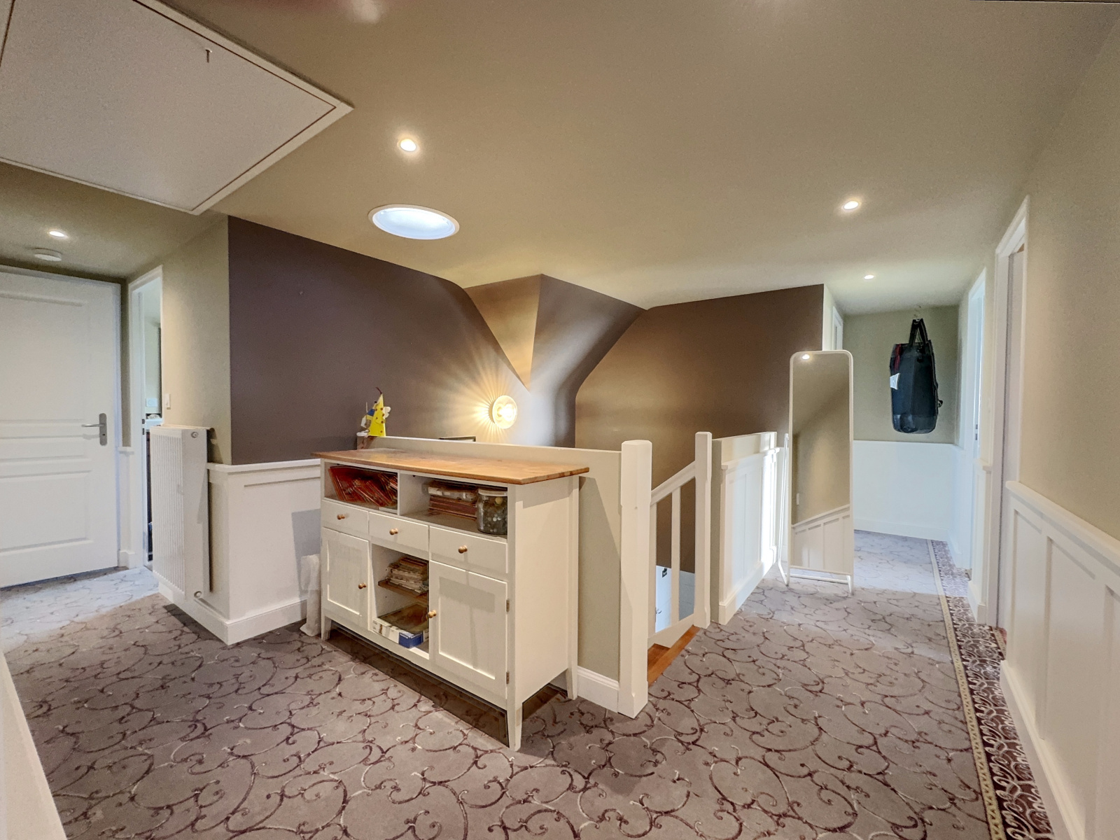 A l'étage, un vaste palier dessert 3 chambres, toutes avec de larges ouvertures sur le Pô, dont une somptueuse suite parentale traversante de plus 38 m2 avec dressing, salle d'eau et double balcon. Les 2 autres chambres ne sont pas en reste avec des surfaces habitables respectivement de 14 et 19 m2. Salle de bain, wc séparé et une pièce buanderie complètent les équipements de l'étage. En outre, s'il vous manque de la place, un immense grenier est accessible par escatrappe pour du stokage, voire beaucoup plus.
